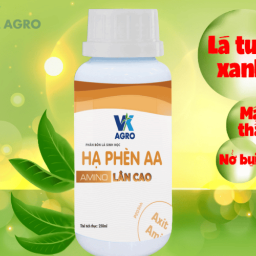 Hạ Phèn AA – Amino Lân Cao là sản phẩm phân bón lá sinh học cao cấp do Công ty Cổ phần VK Agro phân phối. Với thành phần chính là Axit amin và Lân hữu hiệu (P2O5hh), sản phẩm không chỉ cung cấp dinh dưỡng thiết yếu cho cây trồng mà còn hỗ trợ cải tạo đất nhiễm phèn, giảm ngộ độc hữu cơ và kim loại nặng, giúp cây phát triển khỏe mạnh.